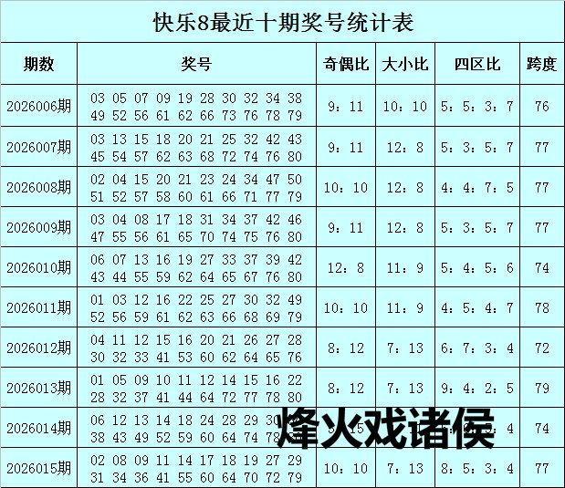 福彩缓和8第2026015期开奖转头:02 08 09 11 14 17 18 19 27 29 31 34 36 41 55 60 64 70 72 79,其中奖号奇偶比开出10:10,大小比开出7:13,四区比开出8:5:3:4百家乐,跨度开出77。